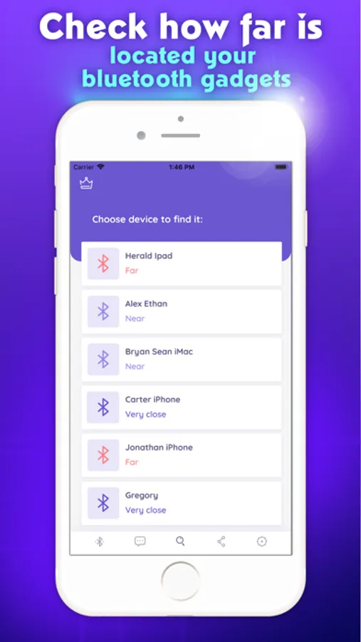 Smart BT Notifier has more great features: chat thru BT connection with your friends. You can create groups or just simple chats. Share any files thru bluetooth connection and find any bluetooth devices that are around you.