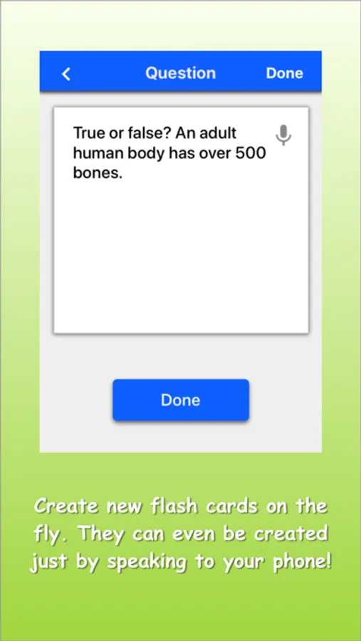 Flash Cards Plus allows you to enter card questions and answers just by speaking to your phone! It's not magic we promise, but it will sure help you study.