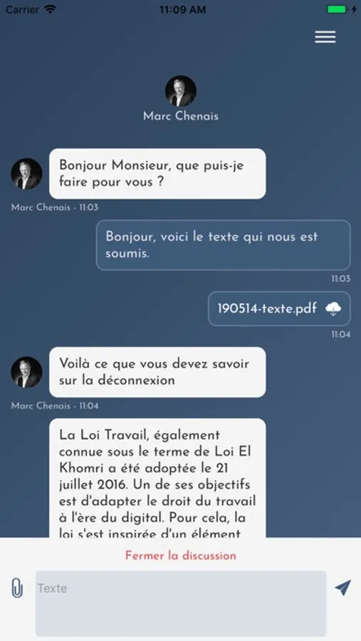 Application qui propose une foire aux questions gratuite, un chat et une mise en relation avec des avocats spécialisés en droit social.