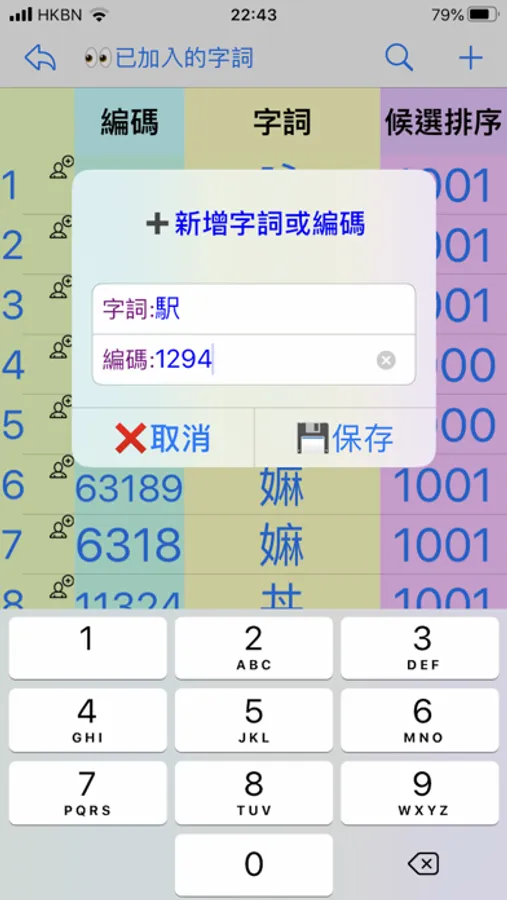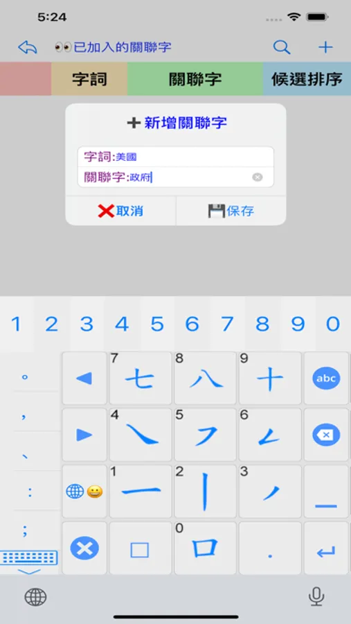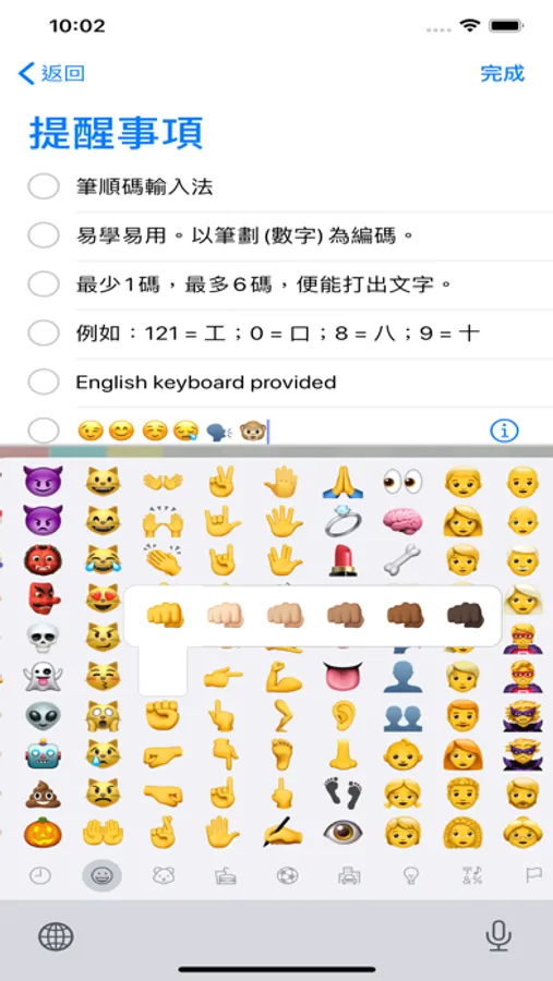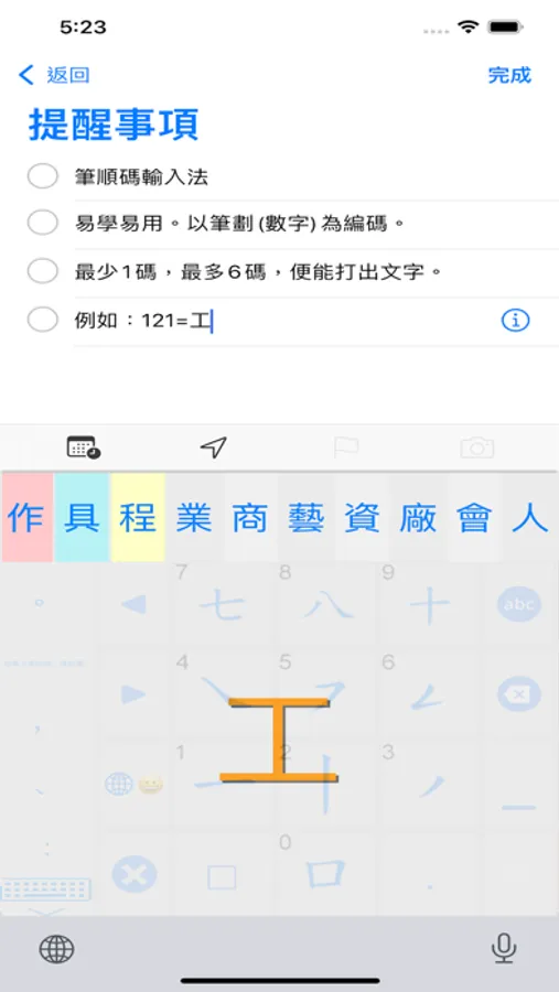 下載和安裝後,請到「設定」、「一般」、「鍵盤」、「鍵盤」、「新增鍵盤…」選取「筆順碼」、「允許完整取用」。