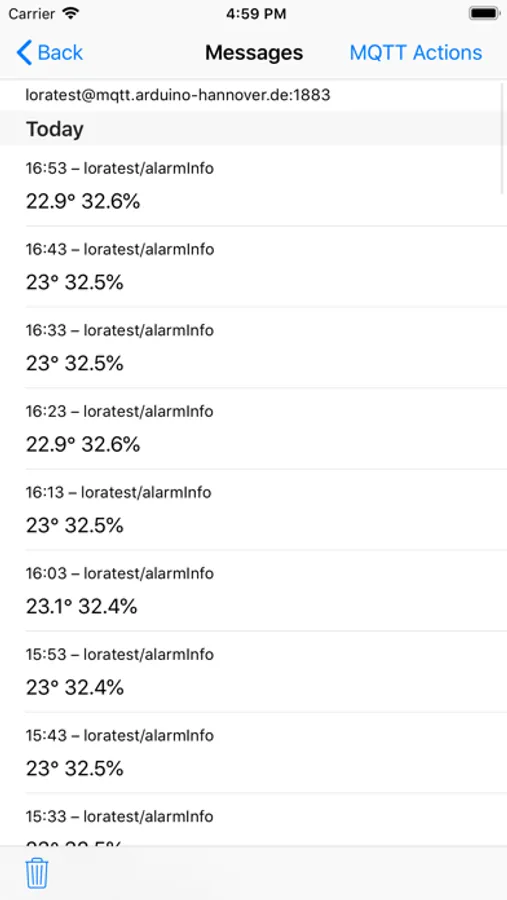 The MQTT Push solution can be operated universally in any MQTT environment. Messages for defined MQTT topics are automatically reported to the app users within seconds as push messages with banners, optionally with an alarm tone. App users can send predefined MQTT messages via an action menu, which can automate further processes via the MQTT server.