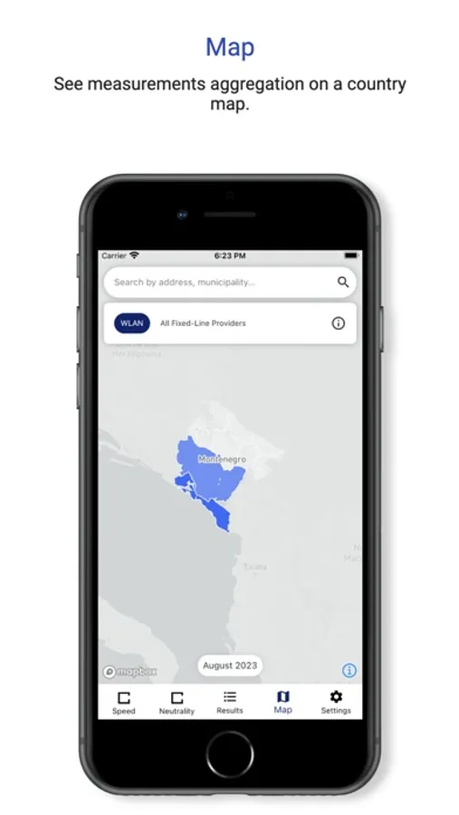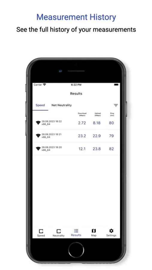 - Prikaz mape sa svim rezultatima testa i opcijama za filtriranje po parametrima, statistici, operatorima, uređajima i vremenu testiranja.