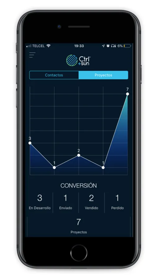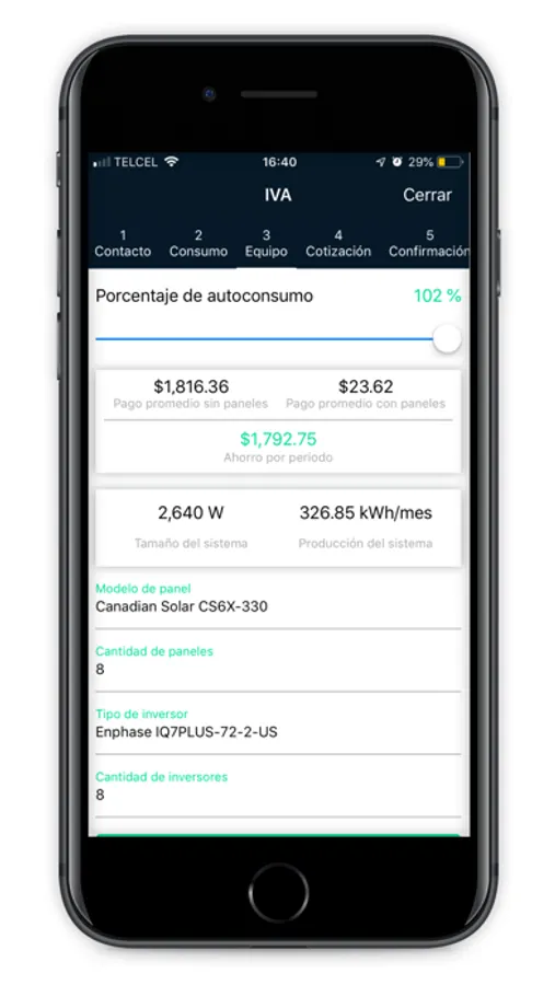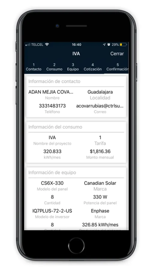 - Lleva un seguimiento de tus vendedores y clientes a través del CRM Solar, en el que puedes dar de alta a 5 vendedores o más.