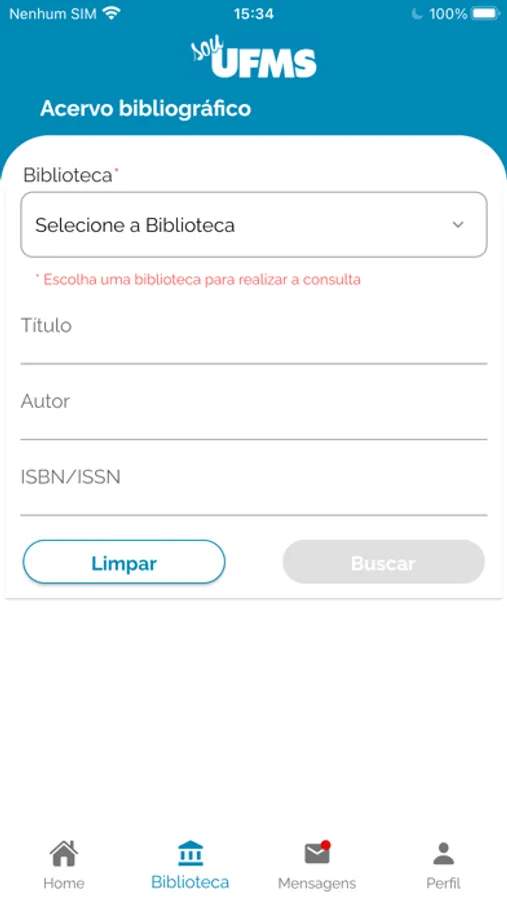 Aplicativo auxiliar para visualização de disciplinas e busca de livros do acervo da UFMS.