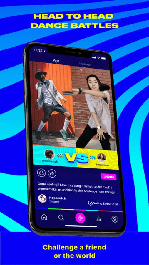The app does the rest: It sends out the dance challenges and invites your friends to come watch your dance battles and support you.