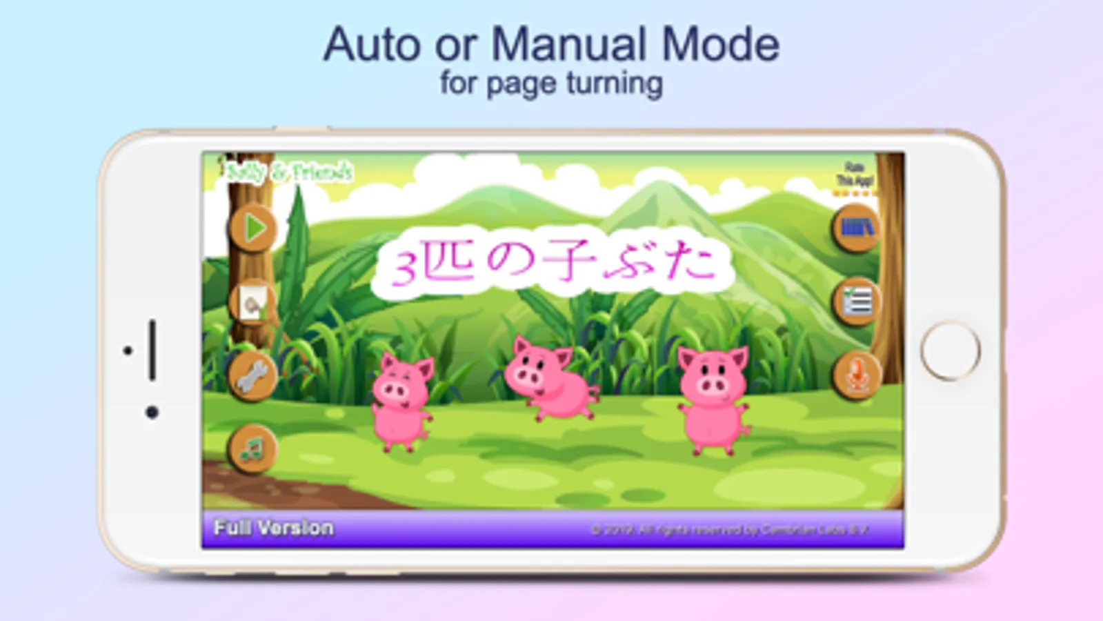 The narration can also be recorded by the user, so the children listen the story from a familiar voice, like Grandma, Grandpa, Dad or Mom.