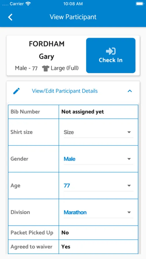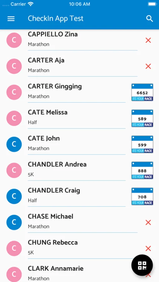A mobile app that can be used by volunteers at an event to check in registered athletes and assign bib numbers. This app allows for a fast check-in process by the event’s volunteers. It also allows the timer to offer an easier process for dynamic bib assignment and lessens the time to prepare packets for race day.