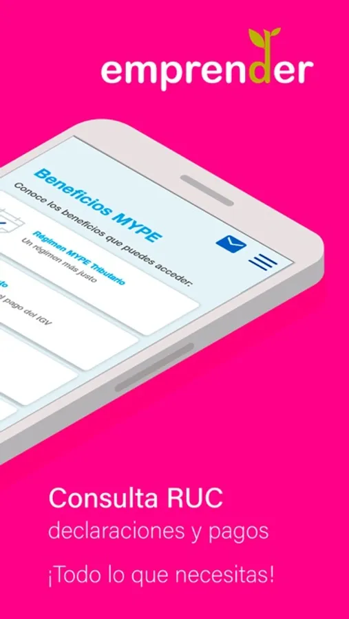 Bienvenido a la APP Emprender SUNAT. Una aplicación desarrollada especialmente para los micro y pequeños empresarios (MYPE) con el propósito de ayudarles a cumplir, de manera rápida y sencilla, con sus obligaciones tributarias.