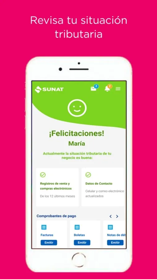 Recibir alertas de notificaciones que la SUNAT remita a tu Buzón Electrónico, así como recordatorios de vencimientos.