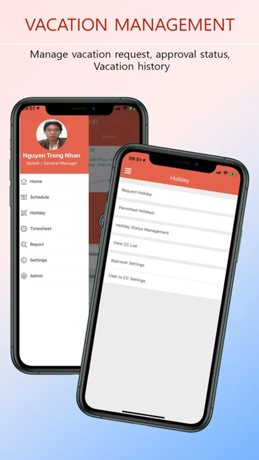 Vacation management: You can manage your application and approval status and approval history for your vacation.