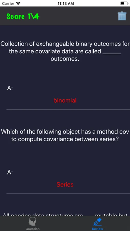 If you want to test your skills and knowledge for dataScience, here is the app for you! There are over 100 questions and you can instantly see the review by answering questions.
