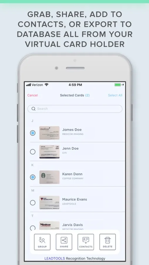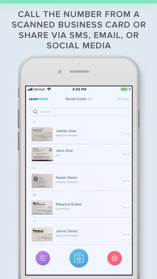 Users are able to easily manage, exchange, search, and access an unlimited number of business cards. The scanned business cards can be saved to a virtual card holder that allows you to quickly grab, share, add to contacts, export to databases, and store the information easily on your phone.