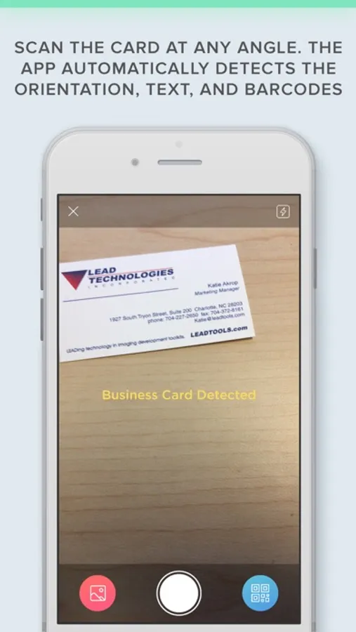 - Automatically focuses on the business card, captures the picture, detects the card edges, and crops any unnecessary background