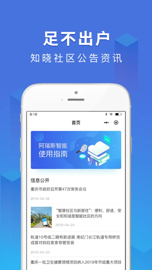 提供信息公开等功能,为社区居民带来最好的社区资讯服务。