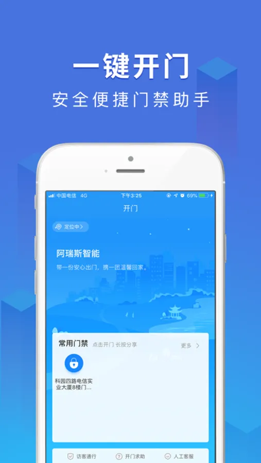 1、 提供常用门禁自定义功能,十分智能化,点击门禁则进行开门,如遇困难开门障碍,还可人工拨打电话方式进行开门。