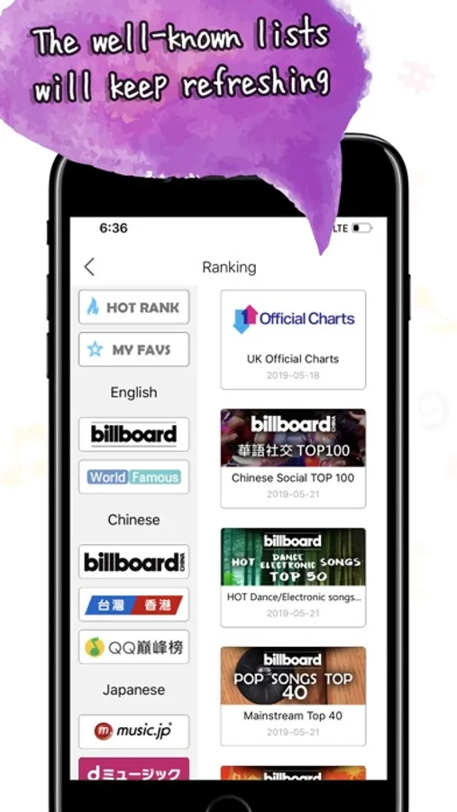 Collecting the world's top charts, one music player collects world wide all top charts.