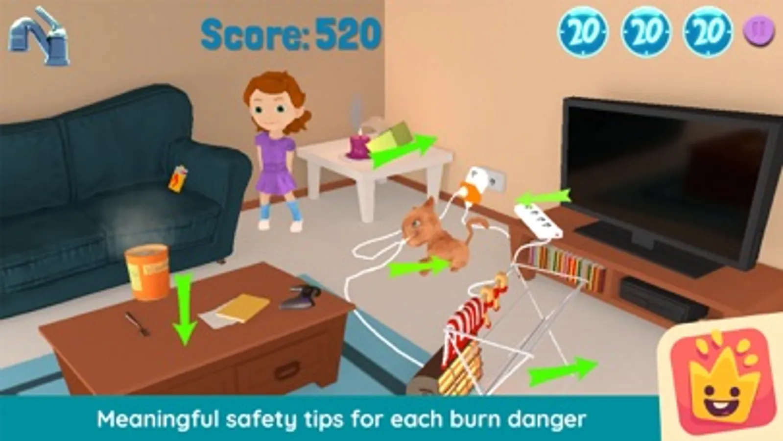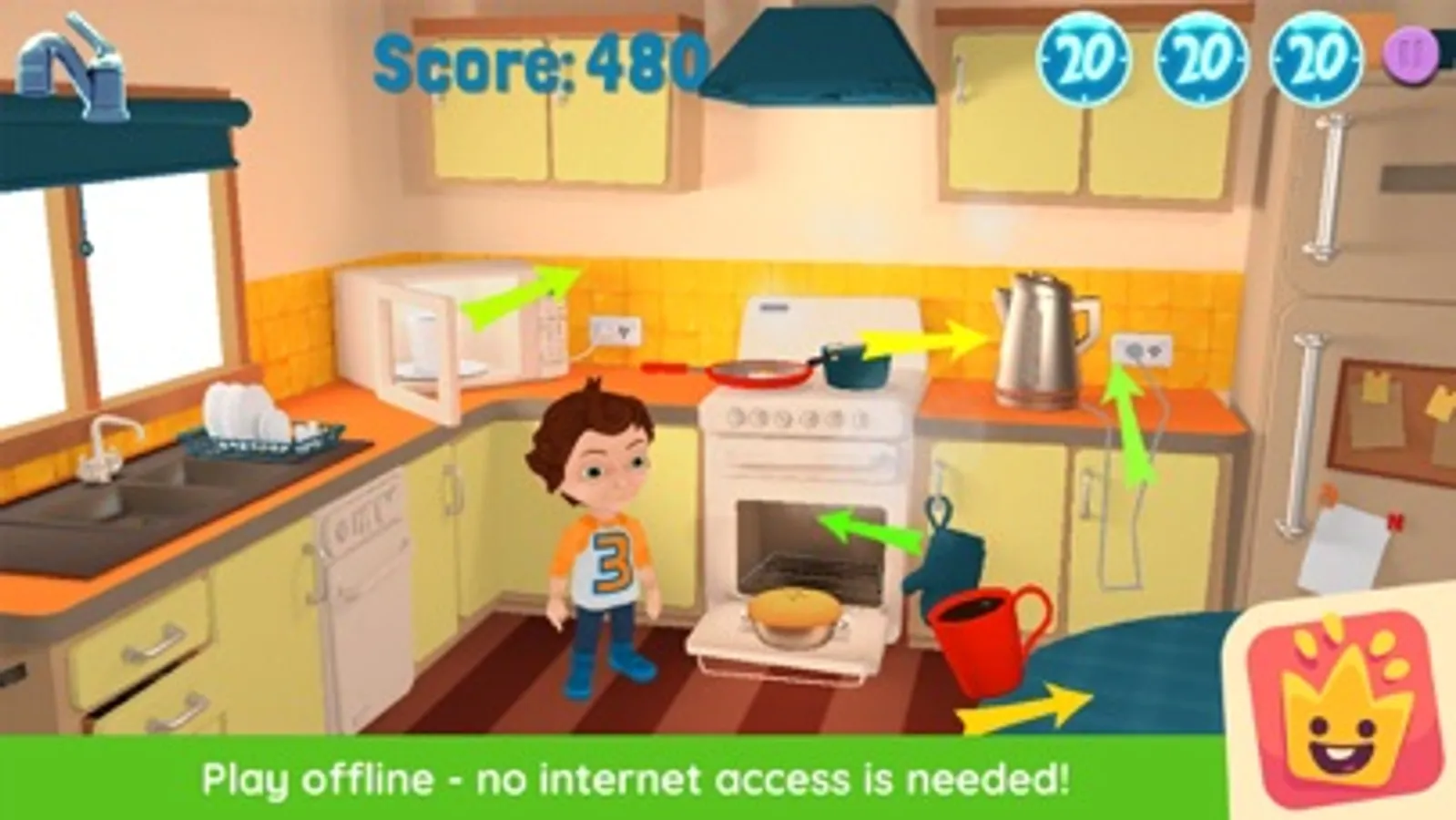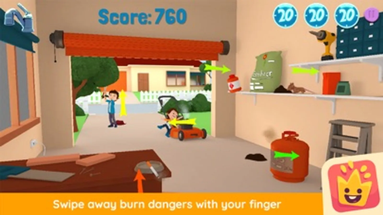 Exo Pexo Cool Swipe sees kids head into the kitchen, lounge or garage and find burn dangers. Swiping along the arrow makes the dangers safe again, but stay alert! The game gets faster and faster the longer you play!