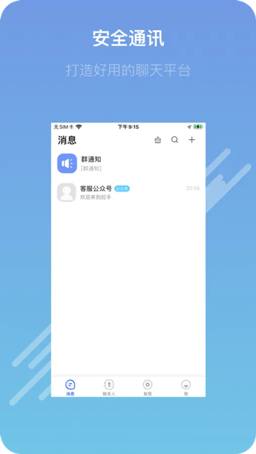 ·更多功能:公众号功能,分享文章,企业账号功能,自定义公司公众号品牌,互联网资源共享,平台共通,方便公司随时管理好人员,资料,客户沟通联系方式,跨平台服务,笔记功能,聊天自定义墙纸,