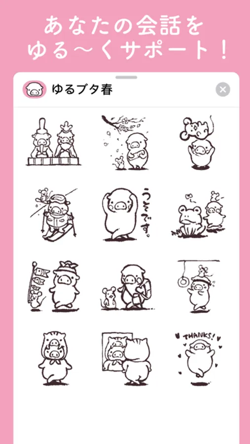 ゆるい顔、ゆるい体型、ゆるい思考、ゆるい行動……脱力系のゆるブタが、あなたの会話をゆる〜くサポート!