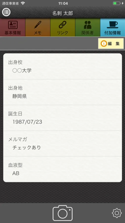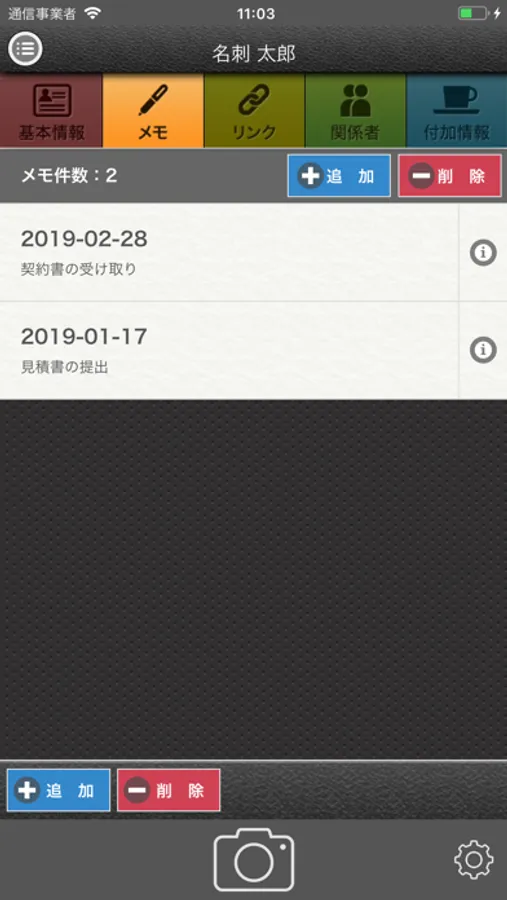 メモ、リンク、関係者、グループ、タグ、カスタマイズ項目