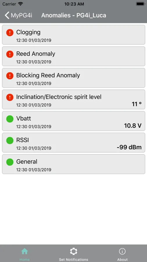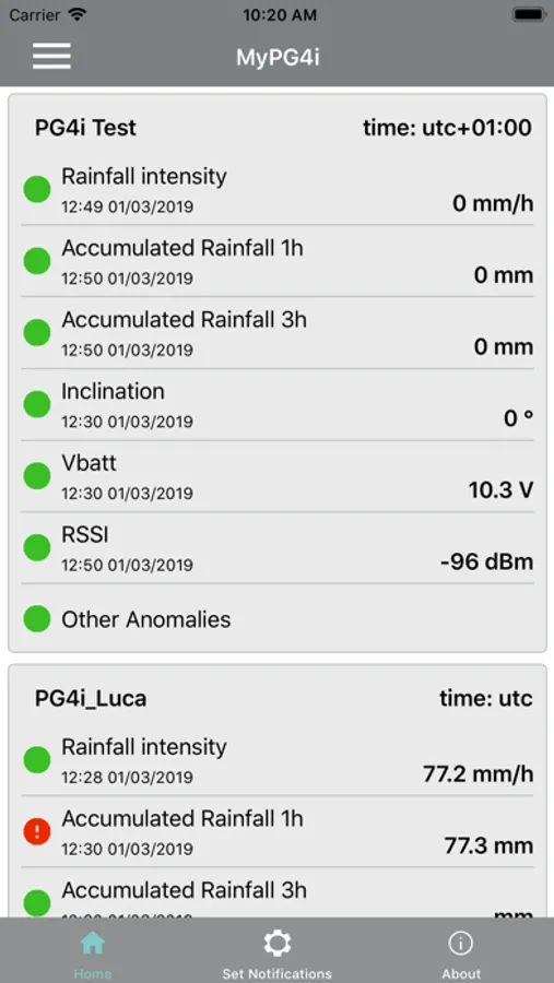 MyPG4i allows you to receive push notifications to inform you of the rain events, exceeding the thresholds set on the accumulated rainfall, at 1 and 3 hours, and any malfunctions reported by the diagnostic sensors.