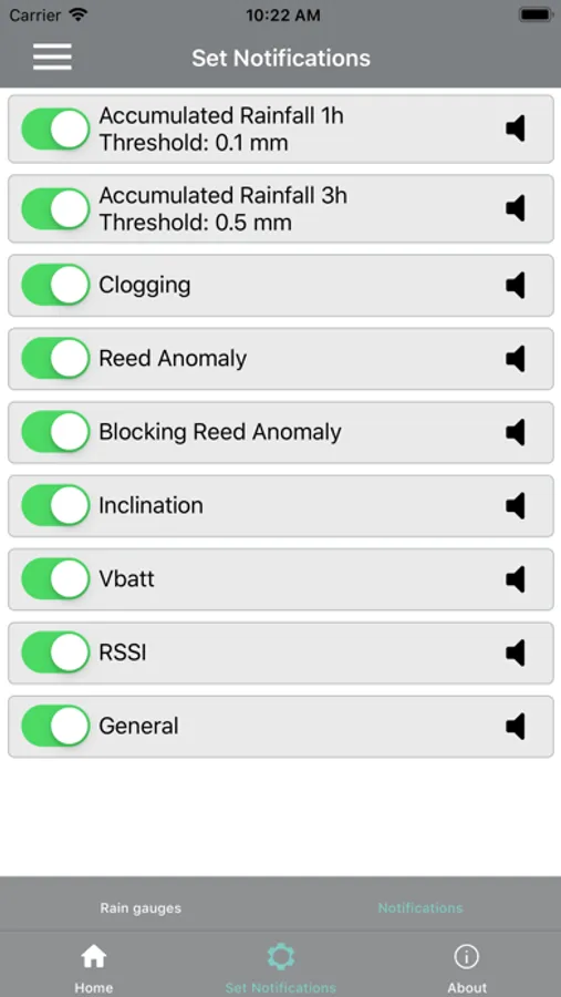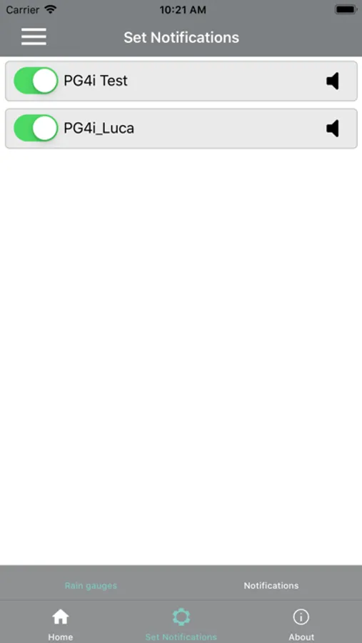 You can activate and deactivate push notifications in relation to each rain gauge or notification type, permanently or only for limited periods of time.