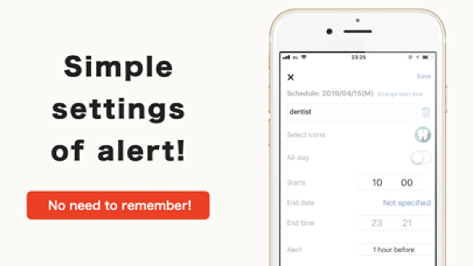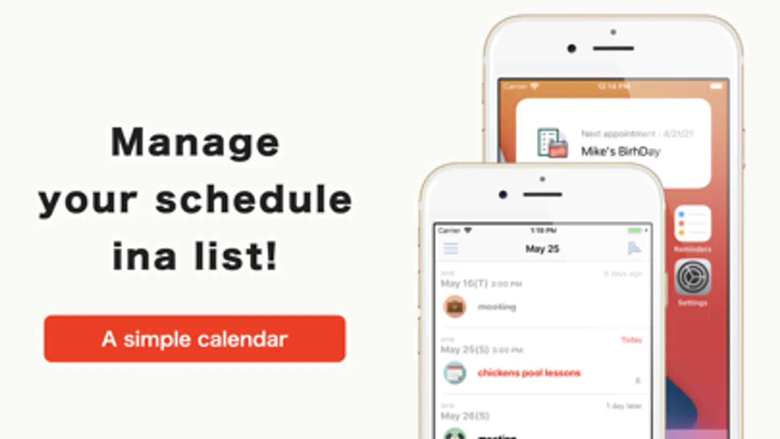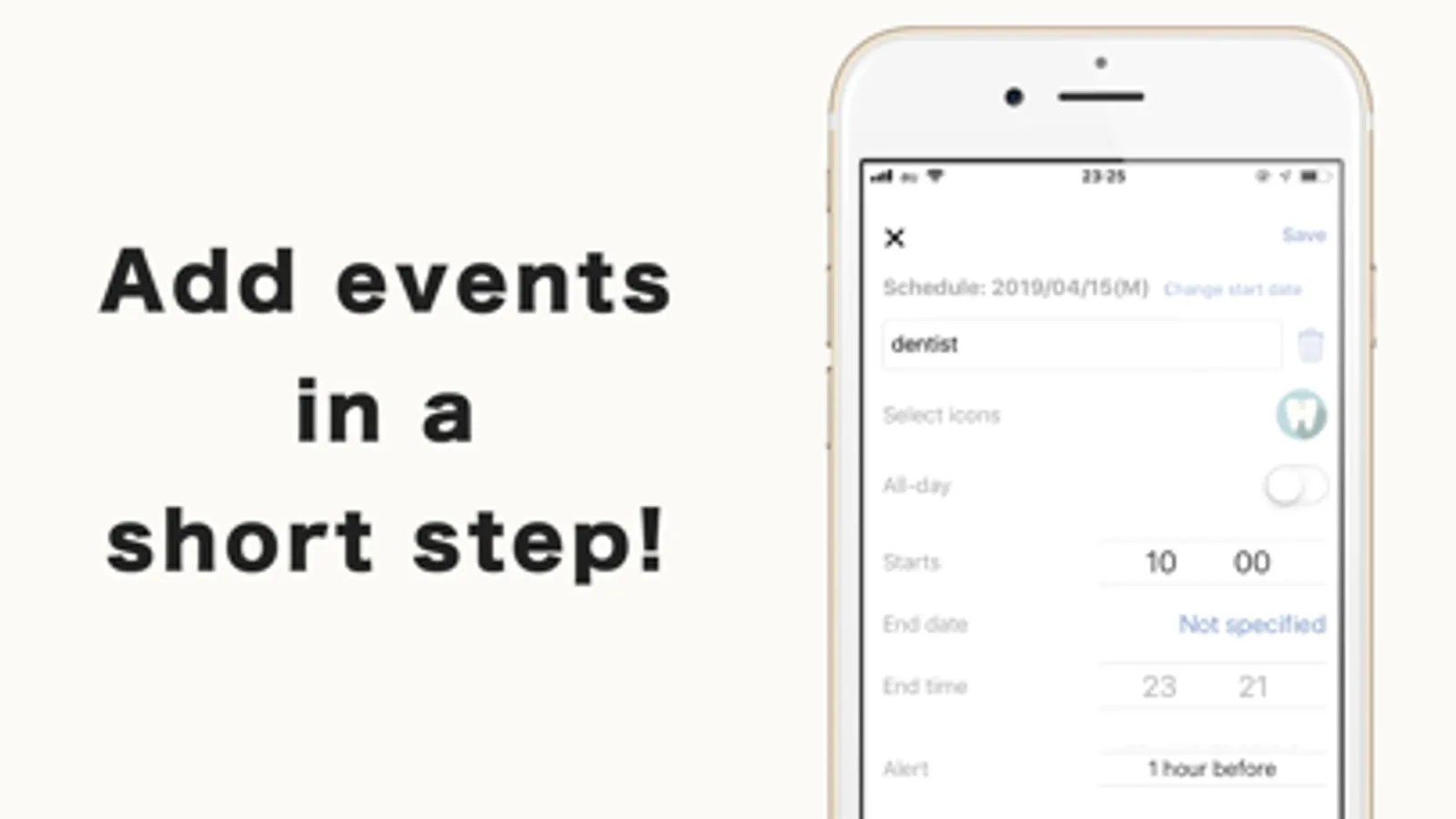 Don't you have difficulty in checking your schedule in normal calendar-type mobile apps? This app enables you to identify easily at a glance what events you have created!