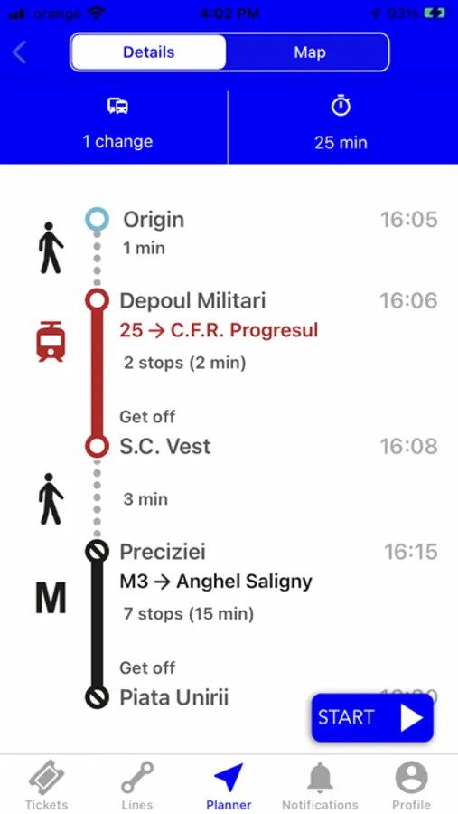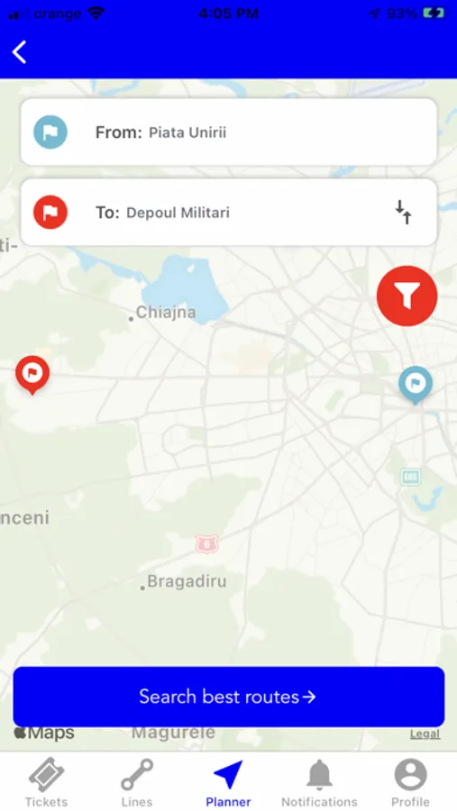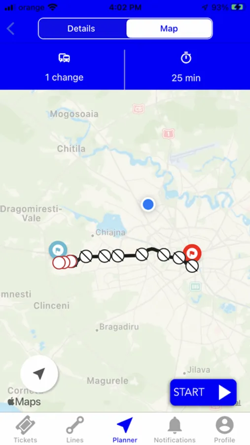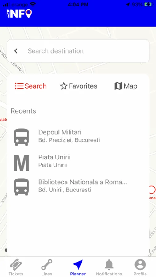 The traveler can start the journey from the current location or from another location on the map and can choose their destination by looking for an address, a point of interest, a desired station or even placing a pin on the map. They can also choose a location they have previously searched for or added to favorites.