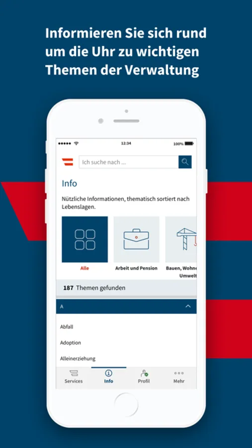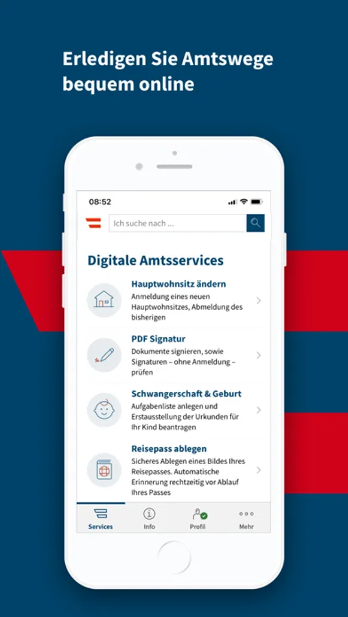 ● Finden Sie alle Online-Informationen zu Amtsservices und Informationen der öffentlichen Verwaltung auf einen Blick.