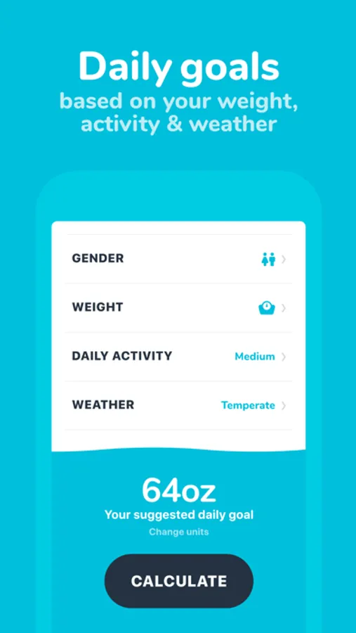 Waterllama water minder calculates how much do you need to drink water according to your activity level, body weight, climate & gender (male, female, pregnant or breastfeeding mom).
