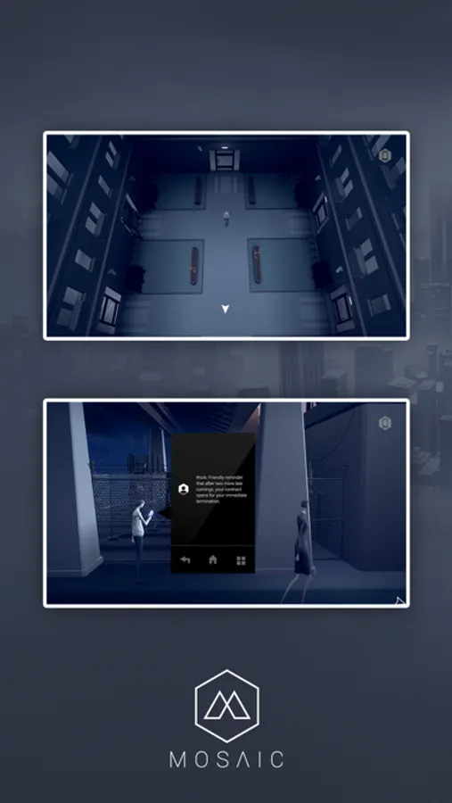 Mosaic is a dark surrealistic and atmospheric adventure game about urban isolation and the dread of being a piece in a giant machinery you can’t understand.