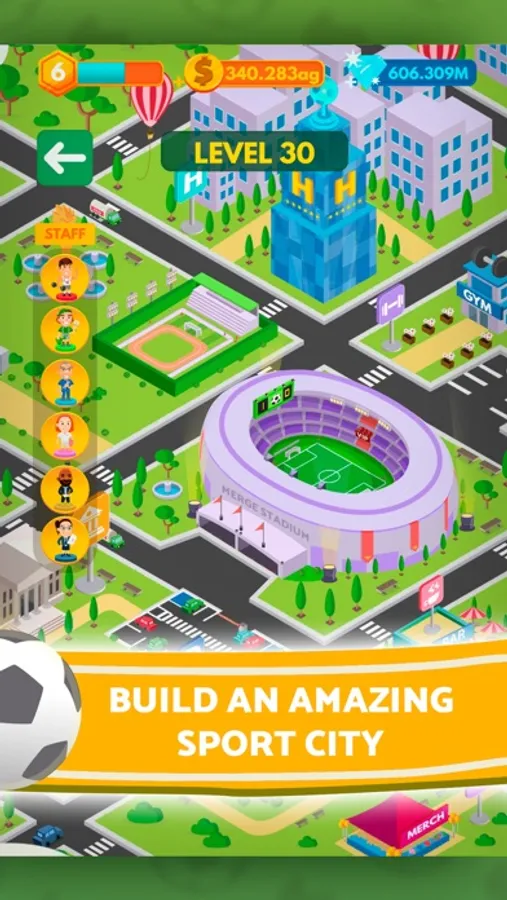 Soccer Merge League is the first merge soccer game where you have to create your own club and make your Sport City growing.