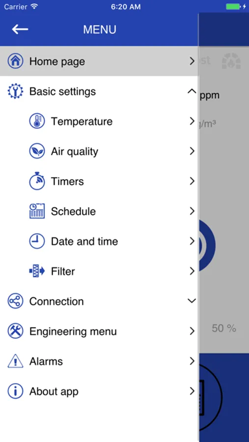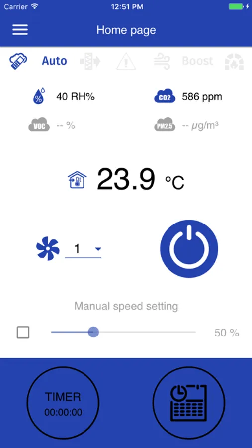 The current status of all ventilation system parameters is displayed on the screen of your mobile phone. Here you can set the speed, select the operating mode (ventilation/regeneration/supply air), set the sensor and timer parameters and adapt the time-controlled operation to your individual schedule. The intelligent automatic system handles all settings for you, so you don't have to worry about changing settings every day.