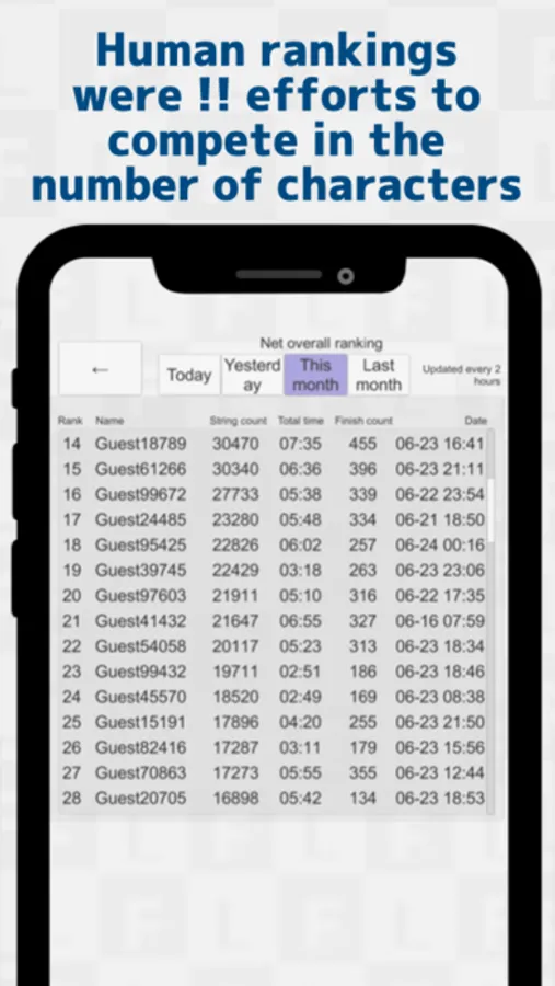 We can compete with everyone and the speed and the number of characters in progress in the net ranking in the daily, monthly.