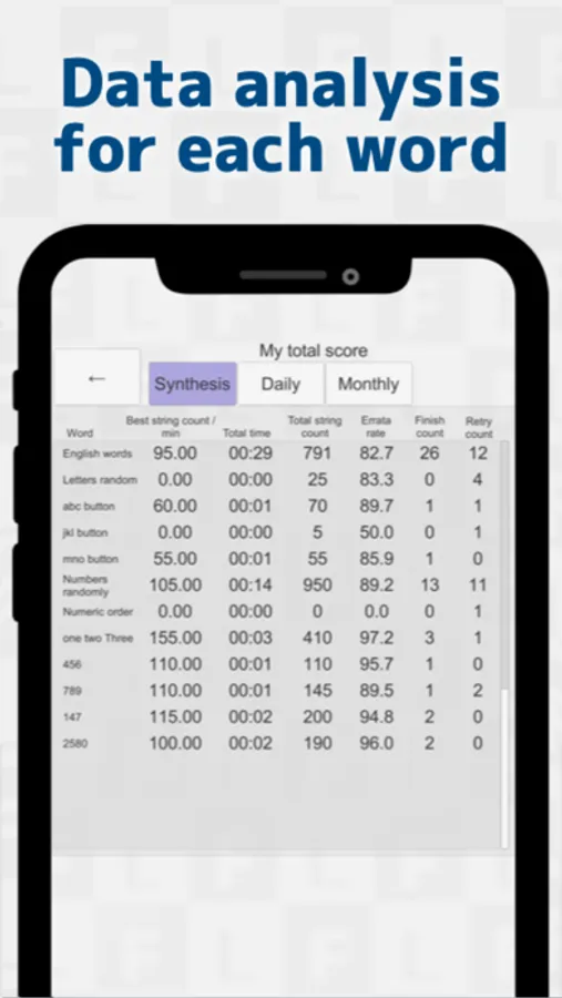 Daily truncation number of times, abstain number of times, and maximum kana characters / min are recorded.