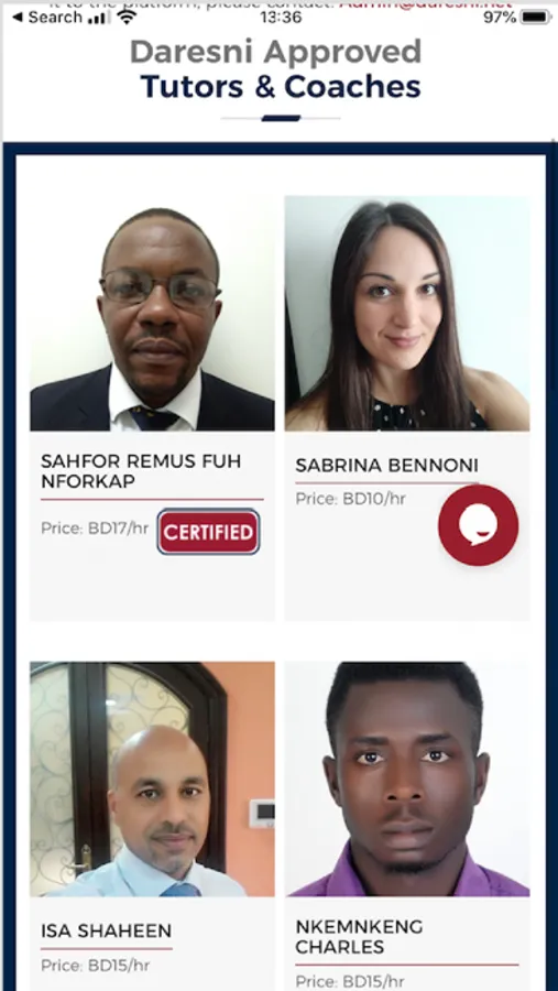 Tutors (either certified or uncertified) can register with Daresni, registering their level of certification, their subjects, and chargeable amount per hour.