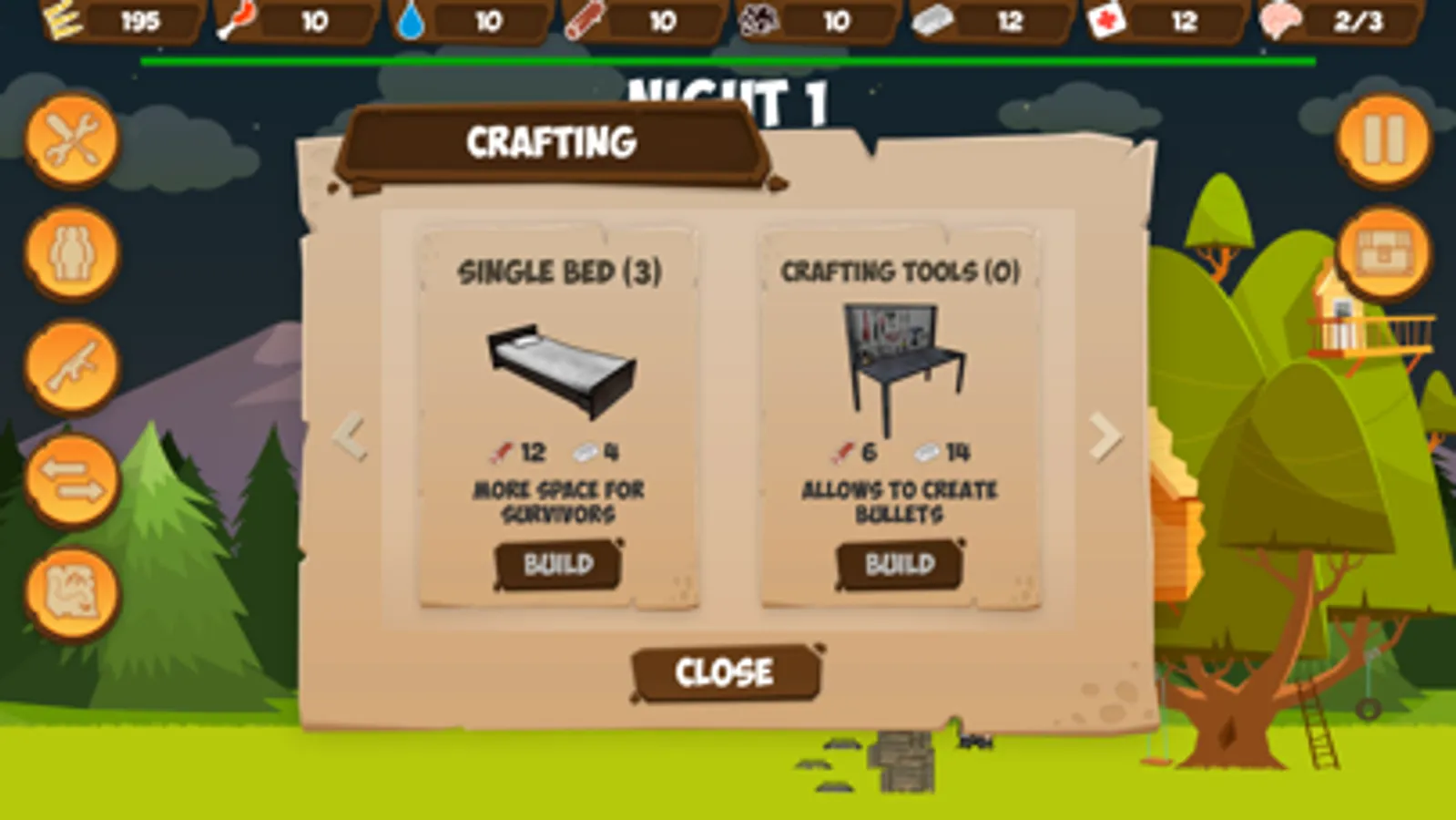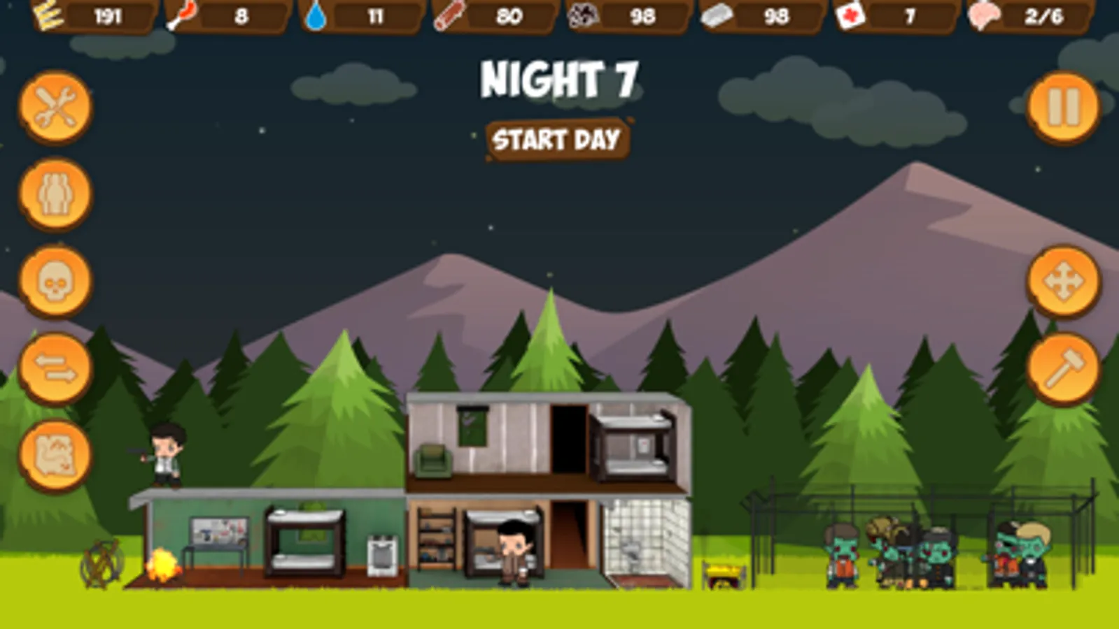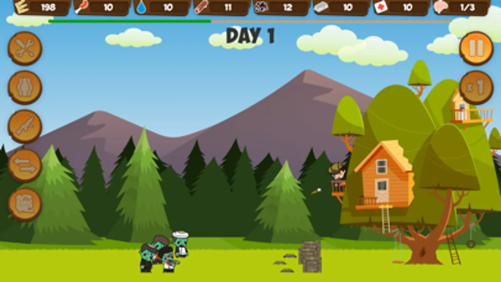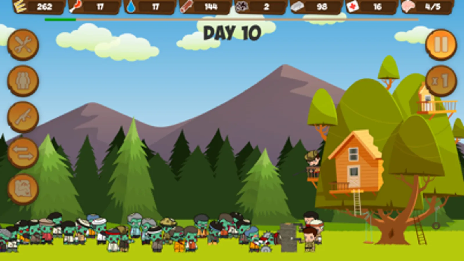 By the will of fate, in the midst of a zombie apocalypse, you found refuge inside the tree house. But every day the number of zombies increases, and the food for them is becoming less. The aggressive dead are not averse to regaling with your brains, and no tree will become an obstacle for them. In order to repel the armies of zombies, you have to assemble a group of survivors, arm them and accumulate enough ammunition with supplies.