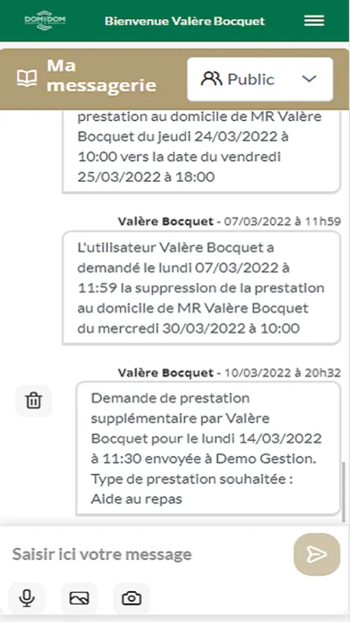 Une messagerie sécurisée qui vous permet d’échanger avec votre agence et/ou vos proches.