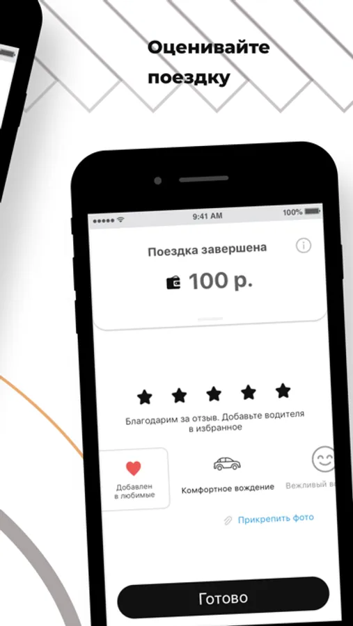 Оценивайте поездку с помощью готовых шаблонов. Занесите водителя в “Избранные”, если понравилась поездка. Прикрепите фотографию к отзыву или посмотрите детализацию платежей после поездки