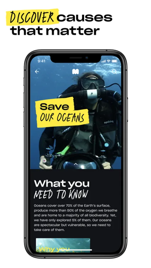 Browse causes and award-winning organizations working in the field to protect and restore the planet. Click the heart icon throughout the app to add them to your support list.