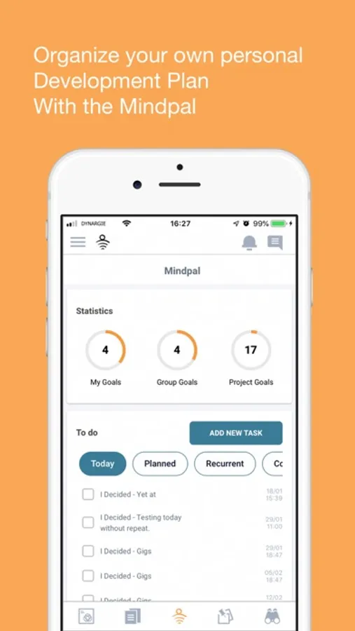 “MindPal” is here for you! This unique feature helps you to set your own goals, scheduled frequent tasks & plans and monitor your progress. This feature includes personal notifications created by you (e.g. reminders of your learning before entering a meeting via geolocation).