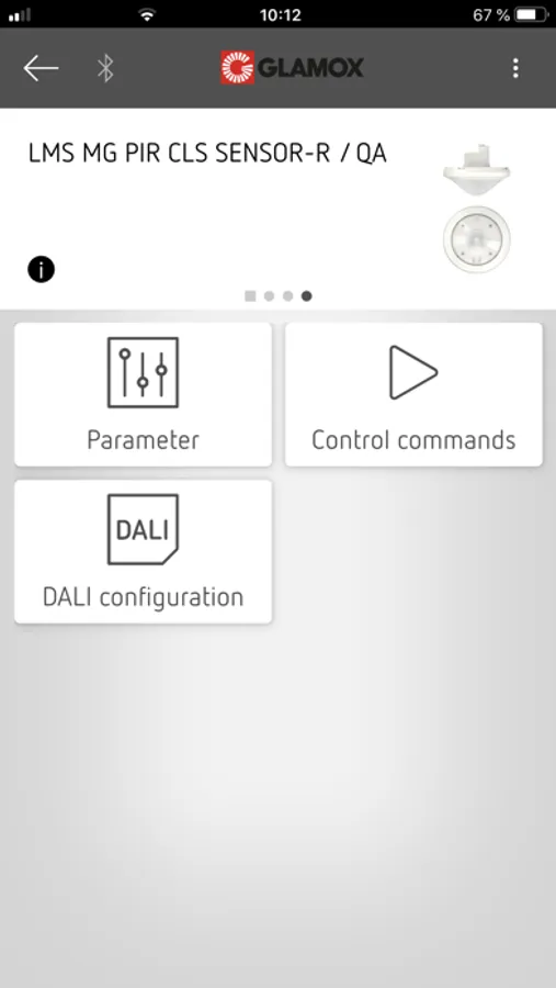 While the sensors are configured via Glamox Sensor-app, the programmed data is transmitted to the respective sensor via the Glamox remote control and infrared. Communication between app and remote control is via Bluetooth. The highlight is the fact that the sensor offers a built-in lux meter which can be used to calibrate the light measurement simply and conveniently. The measured lux values are then transmitted back to the app via Bluetooth.