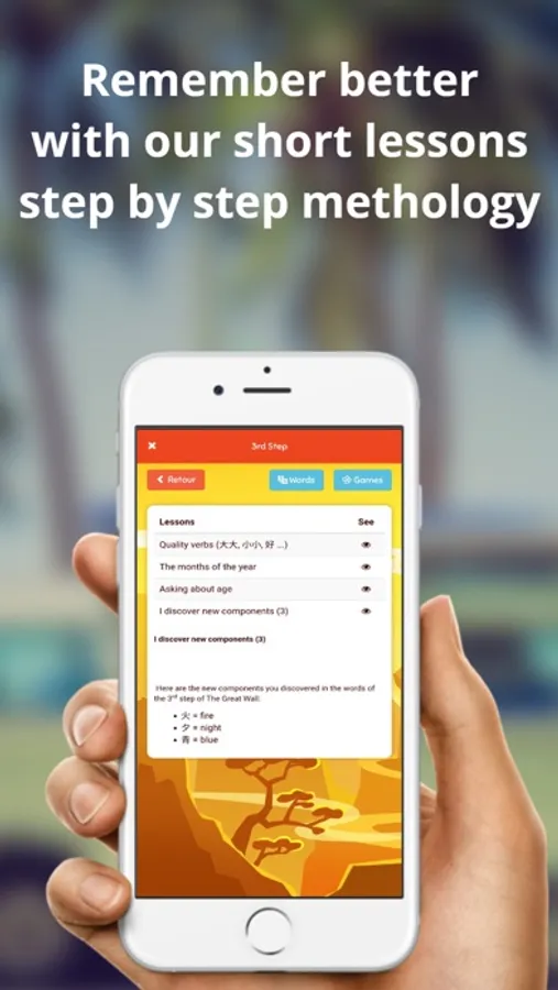 Conquer the Great Wall of characters to master chinese. Step by step learn more and more vocabulary, progress with advanced grammar lessons and practice your knowledge through more than 50 games.