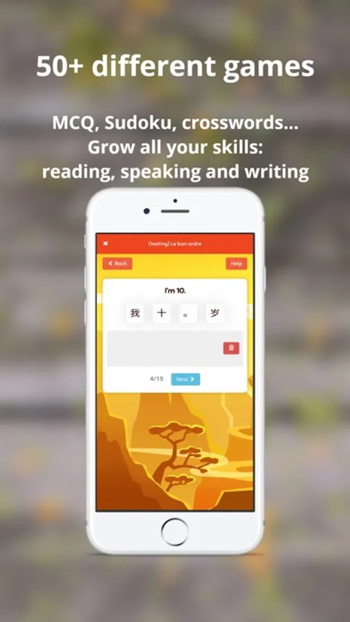 1- Learn how to read, write and speak chinese step by step with over 50 types of games.