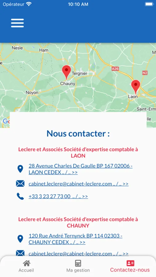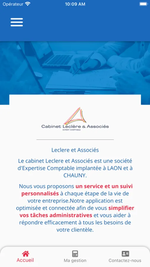 Notre application vous permet d'accéder à votre comptabilité en ligne et de nous géolocaliser.