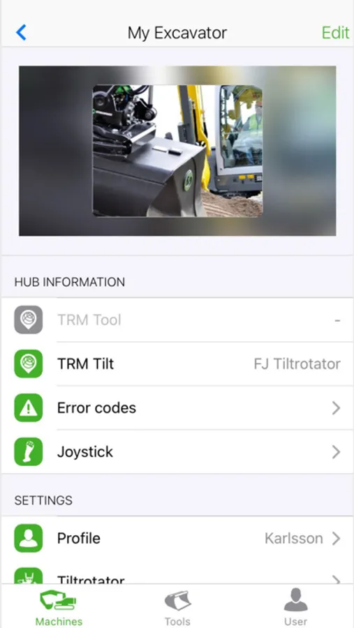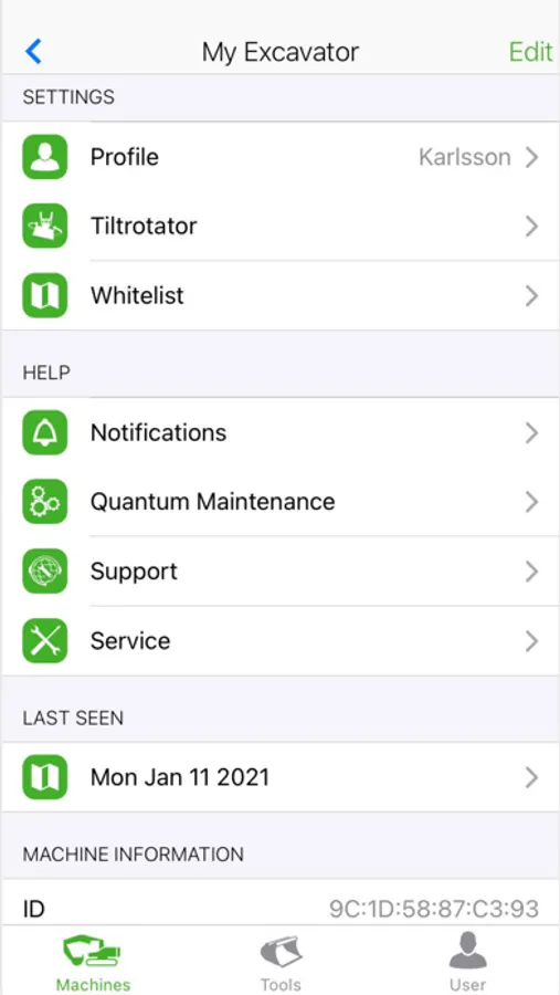 With the Steelwrist Quantum App, your phone connects wirelessly to your Quantum Tiltrotator Control System and Tool Recognition, enabling many smart functions.