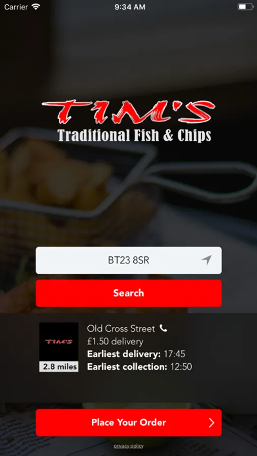 Welcome to the ordering app for Tim's Fish and Chips Shop in Newtownards, Northern Ireland.