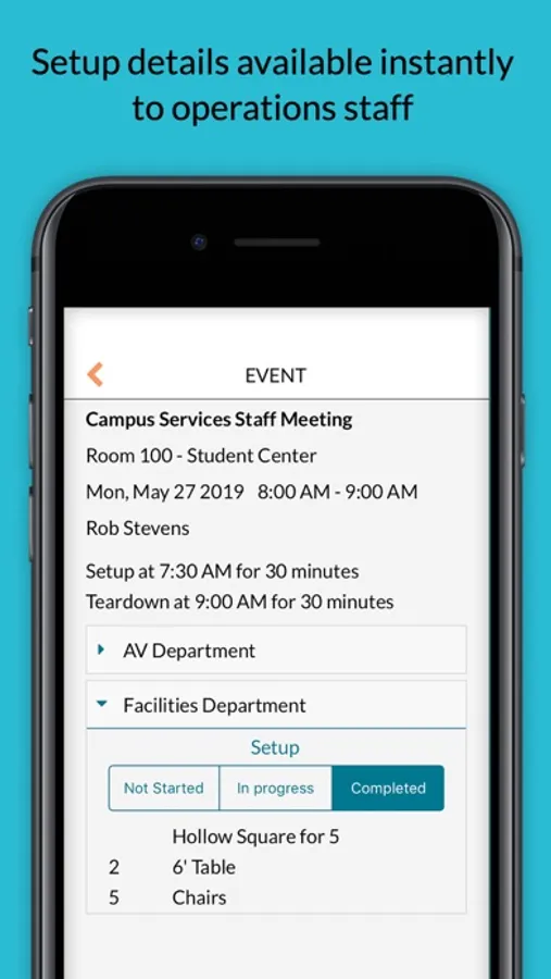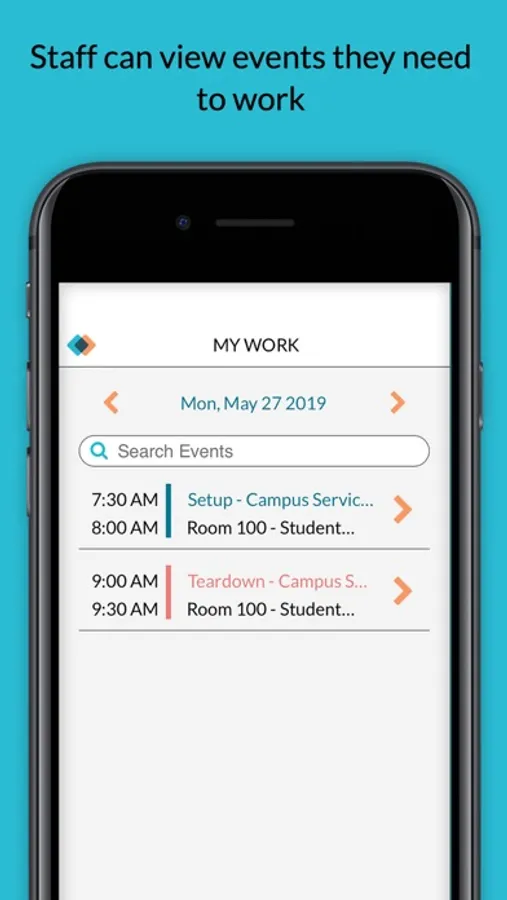 If you provide services for your organization such as catering, AV or facilities then Mazévo Mobile keeps you up to date with the latest information and setup details for all events. It's like having a setup report on your phone. You can review service needs for events, assign staff and even indicate when setup has been completed.