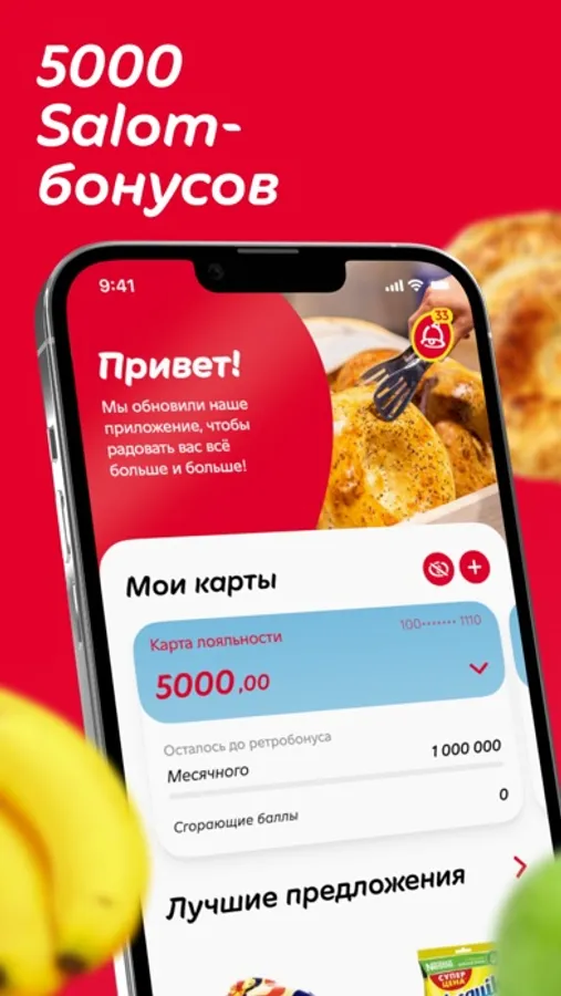 Register a new virtual loyalty card in the Korzinka mobile app and get 5000 salom-bonuses to your account! Bonuses are awarded automatically, immediately after the completion of full registration - start saving or spend them on cool purchases in Korzinka immediately.
