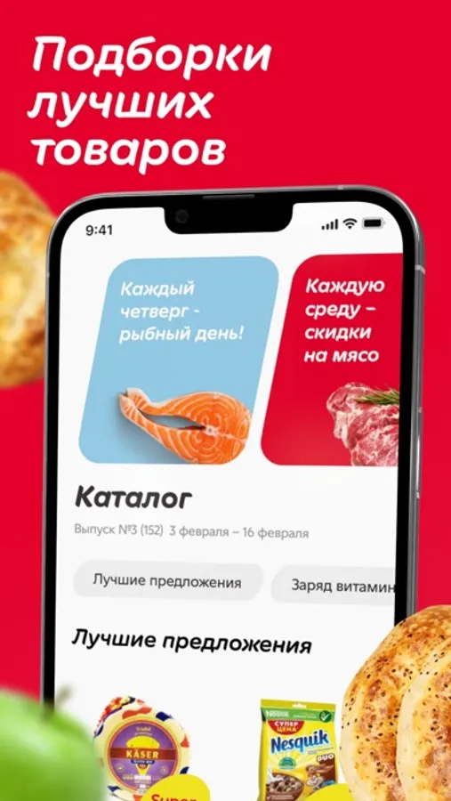 In the mobile app, you can find all the current discounts and promotions at any time, check the prices of the goods you are interested in and find out what is more profitable to buy in Korzinka supermarkets today.